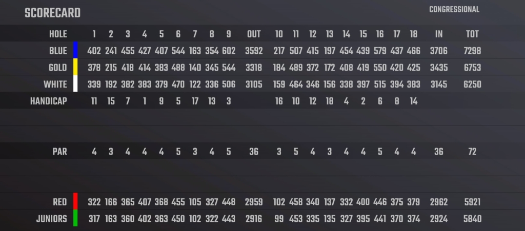 Congressional Country Club is a country club and golf course in Bethesda, Maryland, USA. Congressional opened in 1924 and its Blue Course has hosted five major championships, including three U.S. Opens and a PGA Championship. Founding life members include William H. Taft, Woodrow Wilson, Warren G. Harding, Calvin Coolidge and Herbert Hoover. It is a biennial stop on the PGA Tour, with the Quicken Loans National (formerly known as the AT&T National) hosted by Tiger Woods until 2020. Previously, Congressional hosted the former Kemper Open until its move to nearby TPC at Avenel in 1987. Congressional hosted its third U.S. Open in 2011. Tournament winners at Congressional have included Rory McIlroy, Ken Venturi, Ernie Els, Justin Rose and Tiger Woods, among many others.